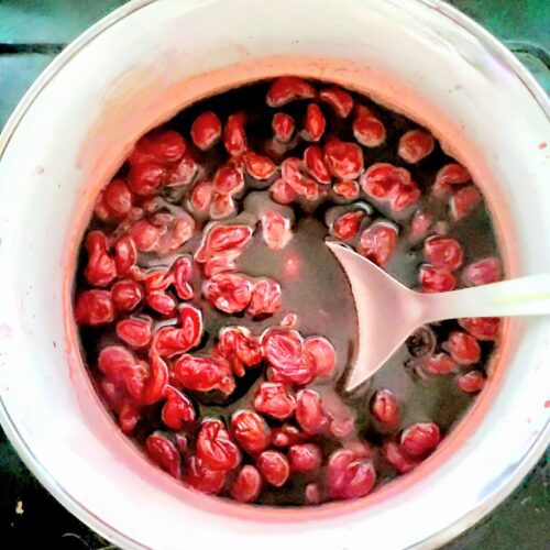 - If using immediately for pancakes or waffles, you may choose to leave the cherries in the syrup, and use while still warm.