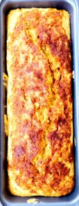 - Pour the batter into the prepared loaf pan and smooth the top. Sprinkle the 2 extra tablespoons of sugar over the top.