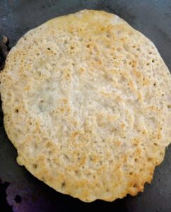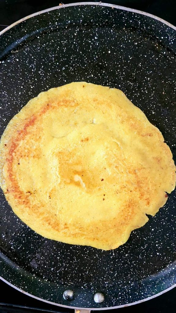 - Pour 1/3 cup batter into the pan and spread it into a thin circle with the back of a soup spoon (about ⅛ inch thick). For wraps, use 3/4 cup of batter.